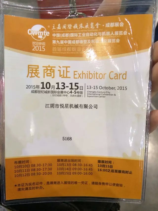 第九屆中國成都橡塑及包裝工業展覽會,時間2015年10月13—15日,地址:成都世紀城新國際會展中心4-5號館(世紀城路198號,天府大道旁)望新老顧客奔走告知,有興趣得朋友可以來展會試機。