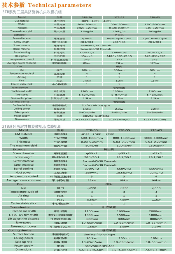 機器特性 吹制各種規格的低密度聚乙烯、高密度聚乙烯和線性低密度聚乙烯塑料薄膜,廣泛應用于食品百貨、日用、化工、針紡品、購物禮袋和工業包裝。機筒、螺桿采用38CrMOAI合金材料經氮化處理精密加工而成具有很好的耐磨和耐腐蝕性。 ...
